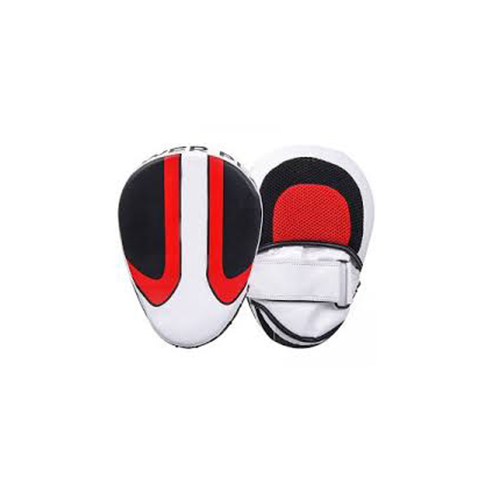 These eye-catching, multi-colored focus mitts are constructed for speed and durability, featuring a striking white, black, and red design that is both modern and highly visible. The rounded, yet slightly tapered shape offers a generous hitting surface while maintaining a lightweight feel. The holder’s hand compartment is designed for ultimate comfort, featuring a large, ventilated mesh pocket over the palm and a wide, secure hook-and-loop strap for stable wrist support, making them perfect for extended periods of mitt work.