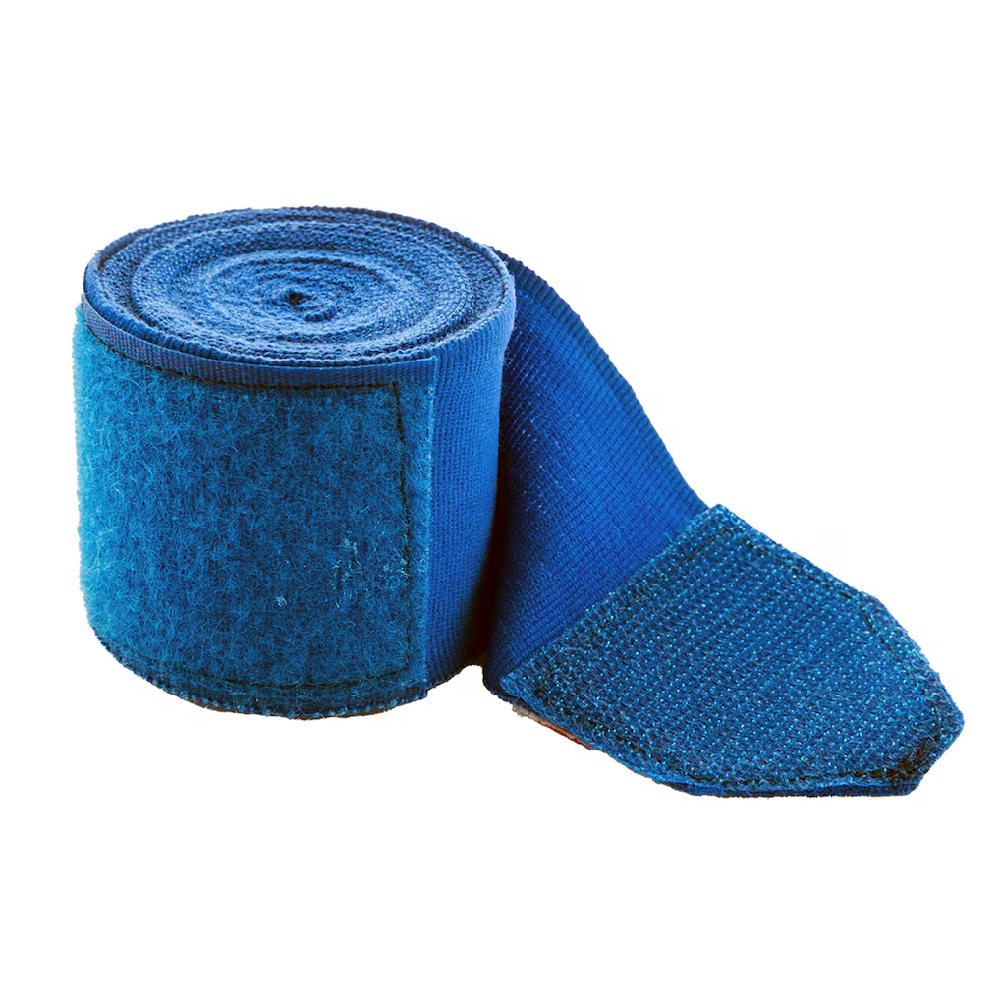 This item is a single elastic boxing hand wrap in a vibrant blue color, essential for protecting the hand and wrist inside a boxing glove.