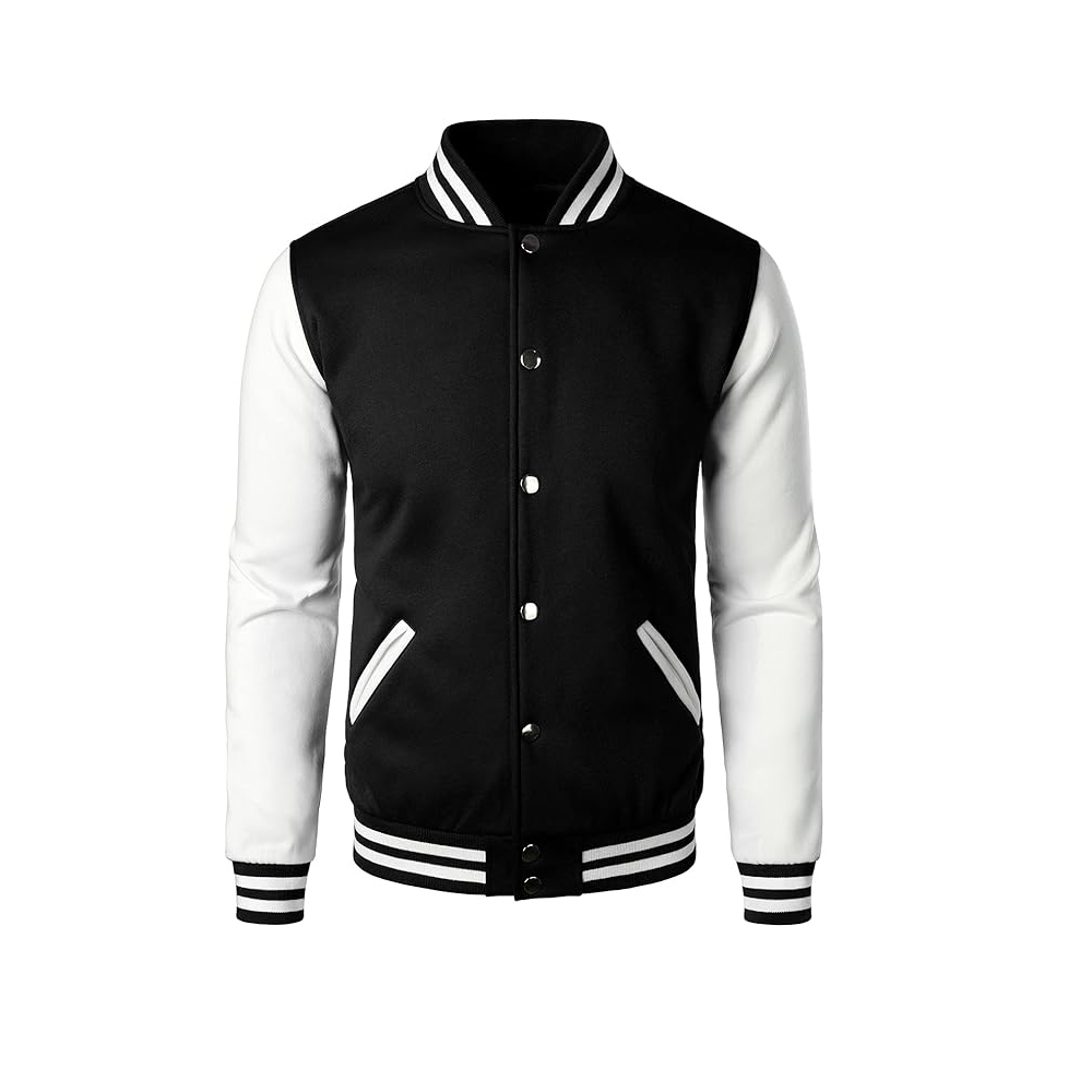 This jacket features a bold black body contrasted with crisp white sleeves, offering a clean, impactful look that goes with everything.